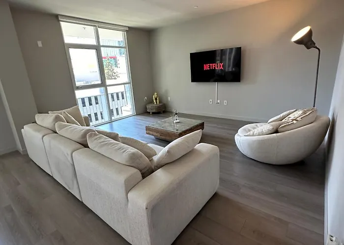Featuring an outdoor swimming pool, the spacious 2-bedroom Luxury 2Br Located Dtla is a mere 5 minutes' walk from Downtown Historic District. Offering a Jacuzzi, the apartment is located only a short drive from OUE Skyspace LA.